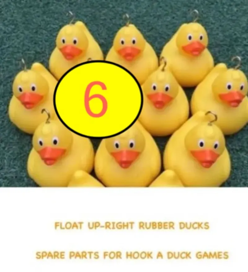 Professional quality rubber float upright yellow ducks, for all traditional hook a duck games.