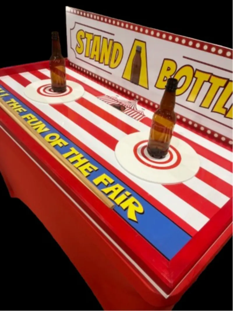Stand a bottle game is suitable for all ages and abilities. Perfect attraction for all fundraising events, fayres, fetes, fun days, schools, churches, residential homes, groups, clubs, event hirers.....