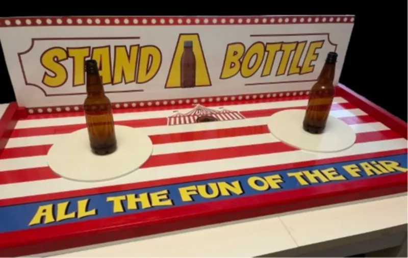 Stand a bottle game is manufactured by Midland Leisure Sales. This game has a eye catching artwork game print design, to look professional at events.
